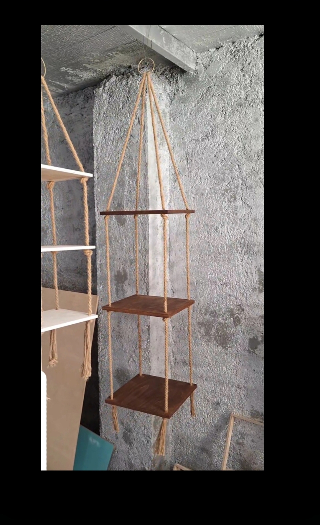شلف آویز چوبی سه طبقه همراه با طناب کدm1